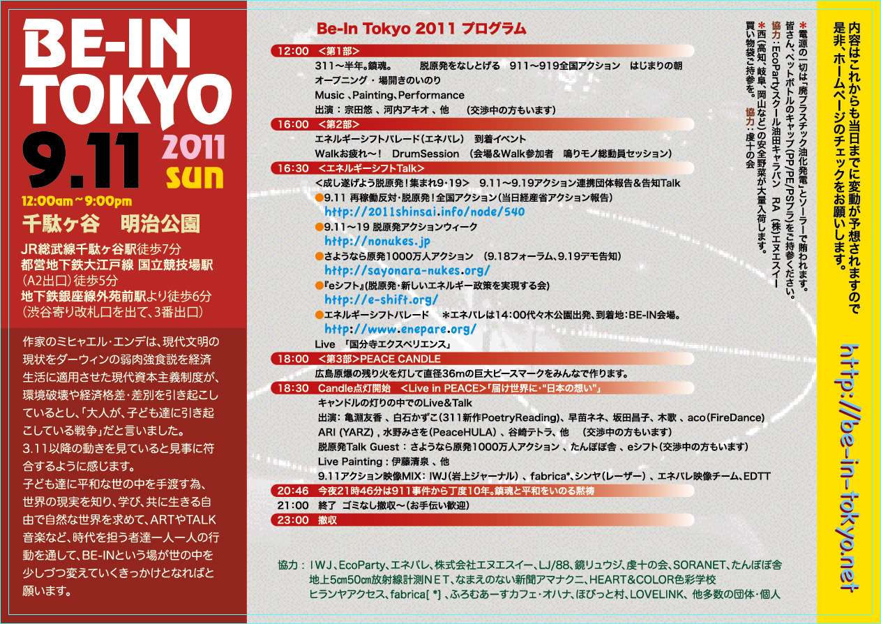 | 2011年のBE-INフライヤー裏 | |||||||||||||||||||||||||||||||||||||||||||||||||